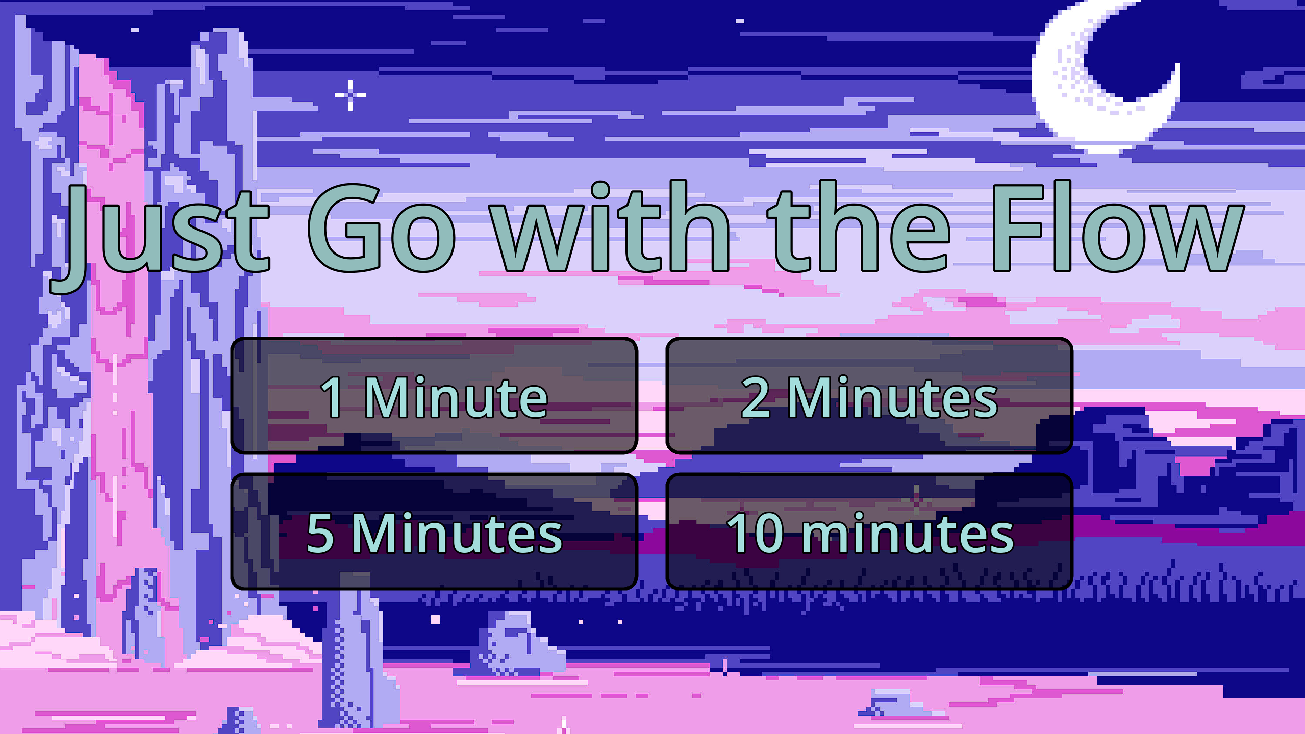This is a simple side-scrolling game, where you try to gain as much score as possible before the time runs out. Your goal is to stay inside the flow (hence the name "Just Go With The Flow") while avoiding the asteroids and picking up the score boosters. The purpose of this game, while it is fun, is to calm you, the player, down. The game does this through its background audio, which is based on EEG research of onset auditory spectral-frequency neuroinformatics. So, the frequencies chosen as background audio are scientifically proven to calm people down.